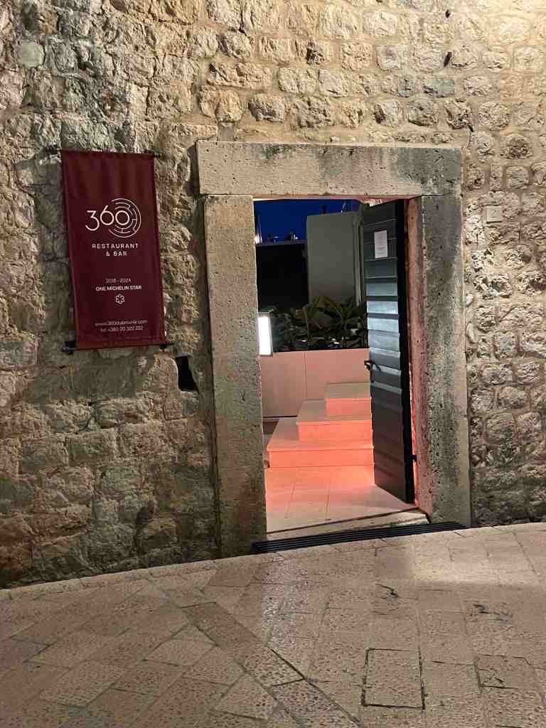 As evening was drawing in, we got ready for dinner and got the bus back into the Old Town. We had booked Restaurant 360, which is the only Michelin star restaurant in Dubrovnik. The restaurant has a really nice location overlooking the marina and as it is on a height, it is not surrounded by a lot of the other tourist restaurants that are scattered around. We were seated outside as it was a very pleasant evening. As always, I will let the photos do the talking.