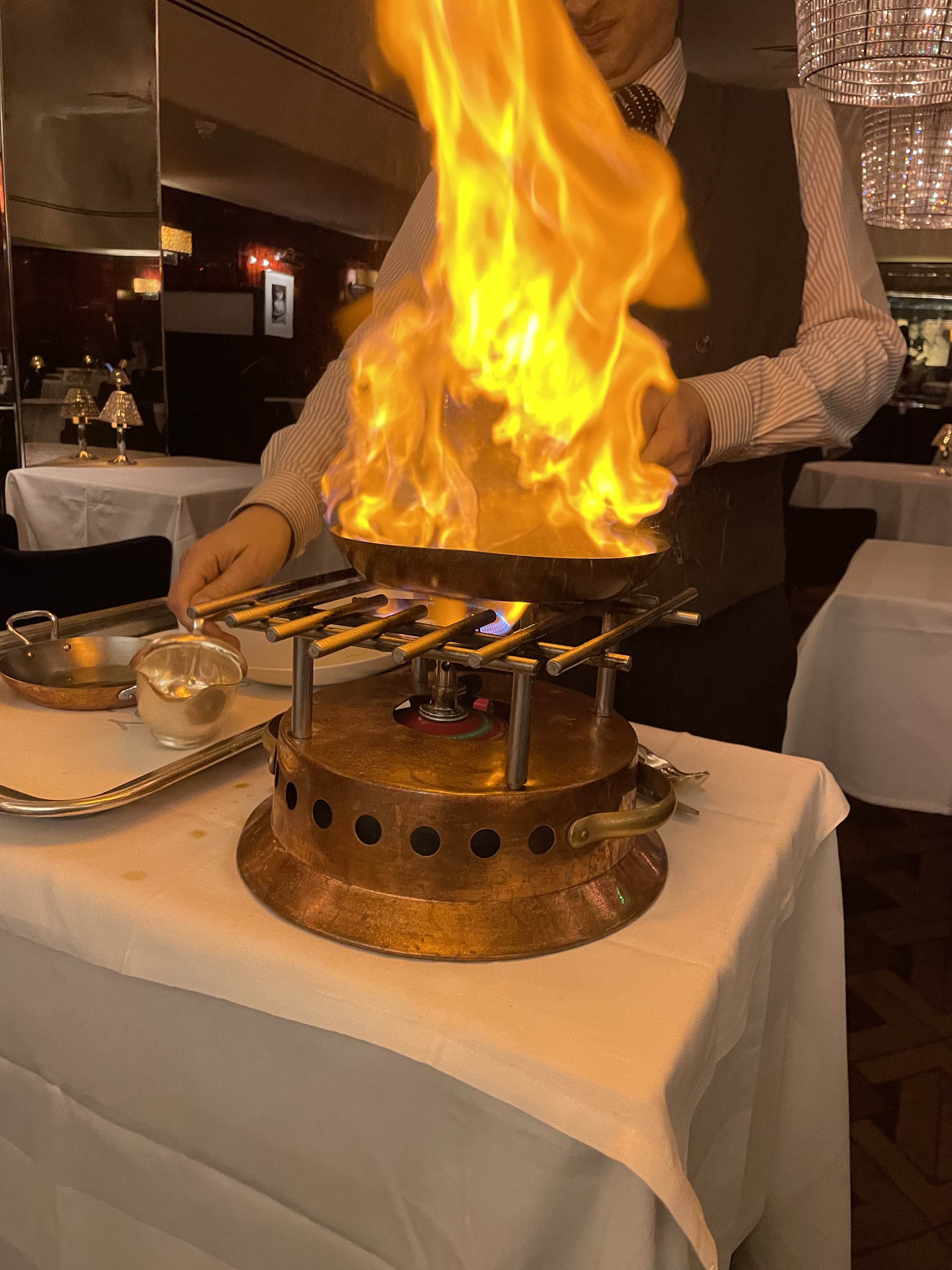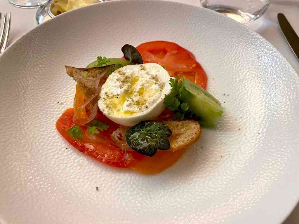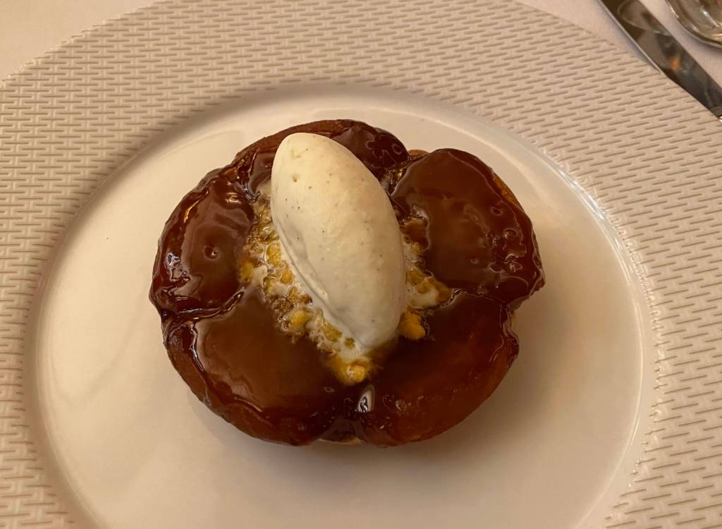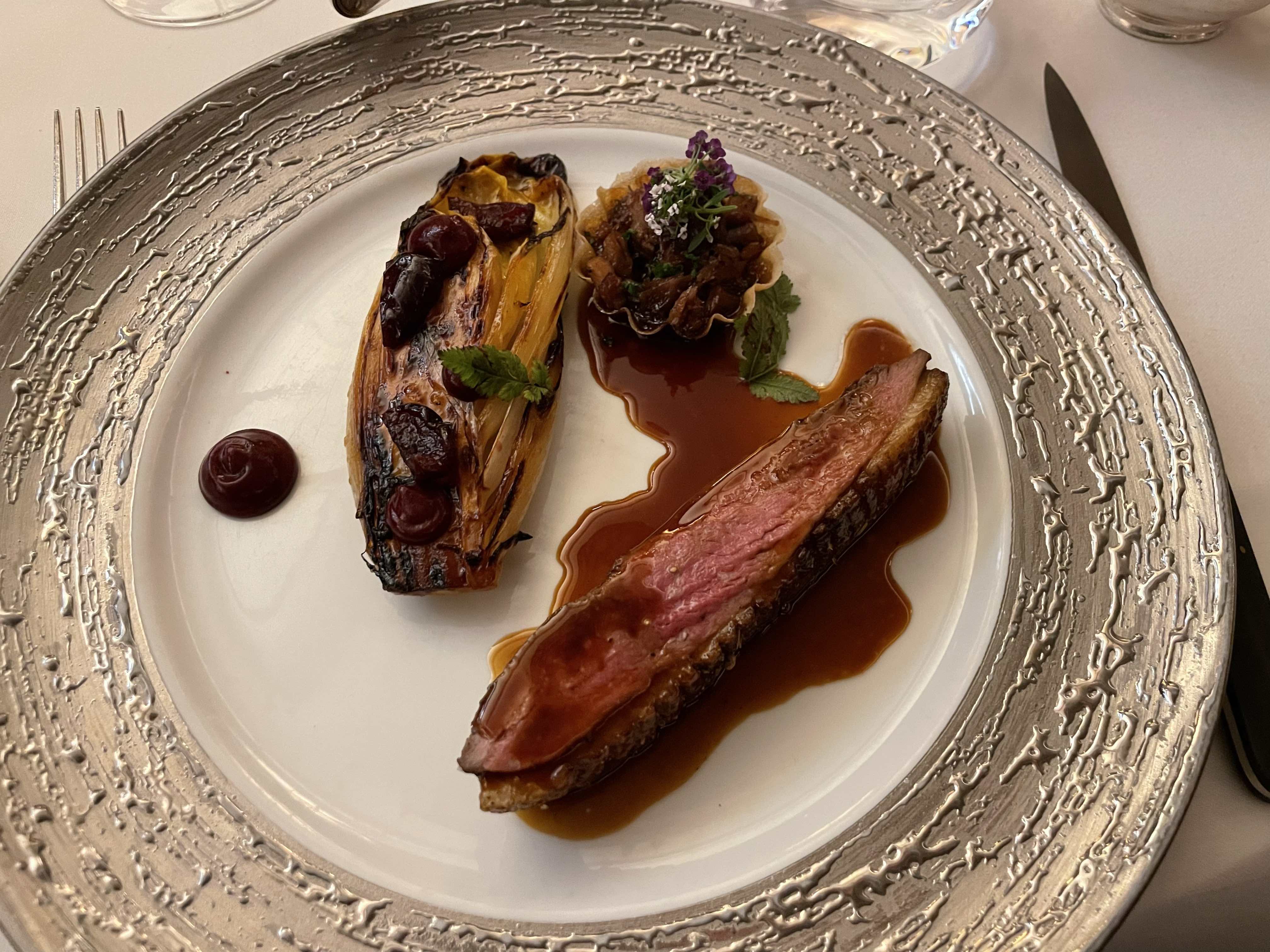 After our drinks, we made our way towards our dining option for the evening – The Savoy Grill by Gordon Ramsay at the very fancy Savoy hotel. C and I have dined here a few times but this was a first for our friends. The interior of the restaurant has a real art deco look to it and is nicely lit and has comfortable well-designed seating areas. The menu is short but reads really well as you would expect. We ordered some drinks – kir royals of course, then ordered our food. To start, I went with the simple heirloom tomato salad, C and one of our chums ordered the smoked haddock soufflé and the other the duck foie gras. My salad was as expected, tasty and fresh, the foie gras rich and really tasty, however it was the haddock that was the star it was delicious. For our mains, two of us went for the duck and two of us ordered the beef wellington. We ordered some fries, pommes purée and charred cabbage as sides. While the duck was good the beef was outstanding. Dessert was next on the list, we ordered tart tartin, cheesecake, rum-baba and a cheeseboard. All fantastic, to say we were full would be an understatement but it did not stop us from hitting a late night bar to finish off a splendid night.