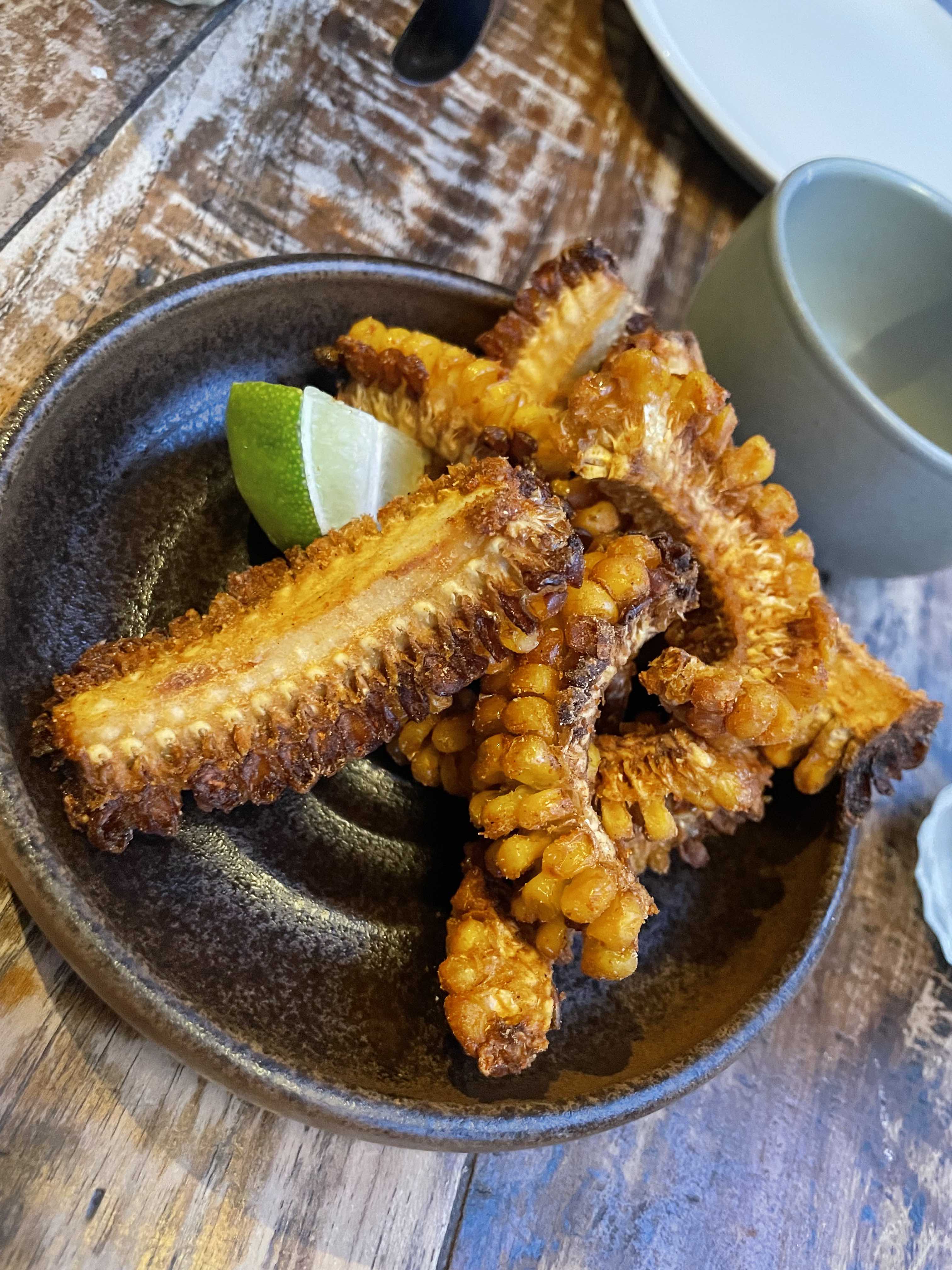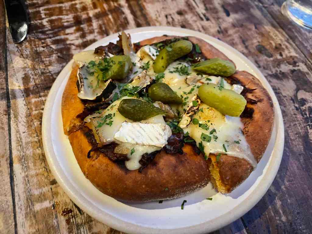 The culinary scene in London is pretty good and after doing some research prior to going, Fallow seemed to be well rated as it is owned by two former chefs who worked in the famous Fat Duck. We arrived in time and were brought to our seats. The menu consists of small plates and some mains and it looks really good. We ordered some frozen margaritas to kick things off and for our food we ordered the corn ribs which are served with a wedge of lime, the smoked sausage which was fantastic, Tartiflette flatbread with cheese and black garlic, the halibut fish, the Fallow burger and the fall off the bone beef ribs which were fantastic. Yes, we ordered too much food, the ‘small’ plates were a lot bigger than we anticipated, but we give it a good go.