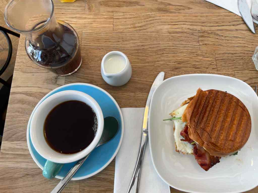 The following morning we checked out of our hotel and went to a local place for breakfast called the Black Rabbit. I ordered a coffee with a egg and bacon toasted bap and C went with the avocado toast option served with bacon and an egg . The food was fine and the coffee pretty decent. After, all that was left to do was hop on the tube once more and make our way to the airport for our flight home.