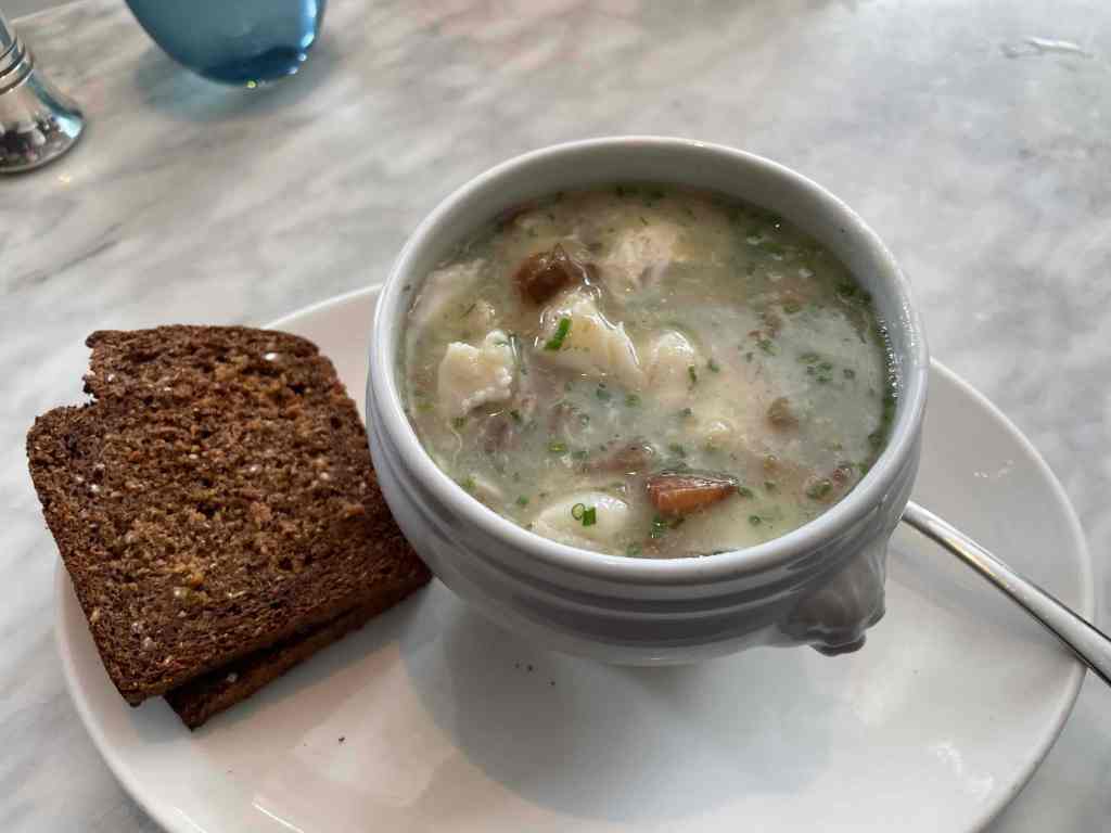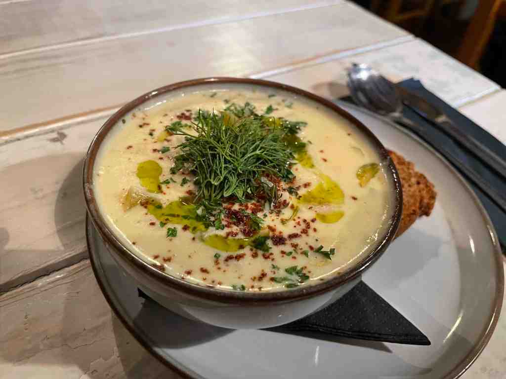 The seating is what is best described as ‘cosy’ but it did not feel cramped, they also have outdoor seating and the staff were very friendly and professional. We ordered a drink and had a look over the interesting but short menu. C decided to forgo a starter, I however, ‘had’ to order the chowder given my disappointment earlier that day. Thankfully, the chowder was tasty, creamy with plenty of fish and they did not hold back on the dill (my favourite herb). For our mains, C opted for the Thai green curry, I went with steak. The curry was really tasty and it came in a humongous bowl, the steak, was, mediocre, not the worst steak I ever had, but given the amazing chowder, it was a disappointment. For dessert we shared a slice of apple tart, which was actually pretty decent – we ordered one more drink and headed back for a good’s night rest.