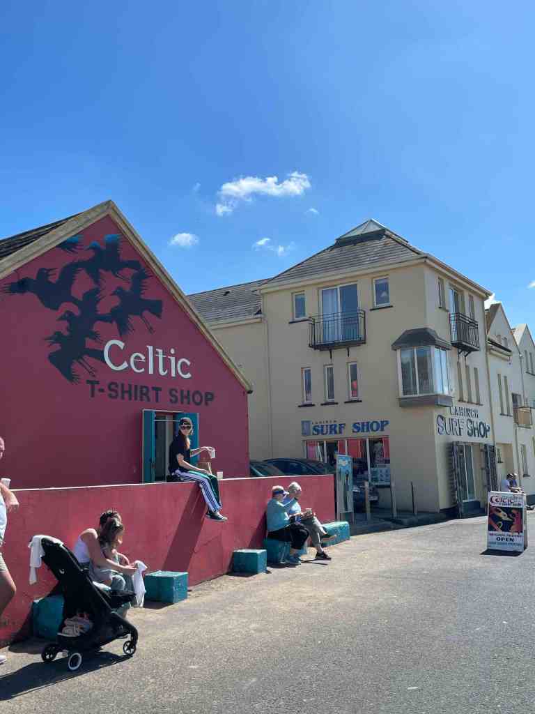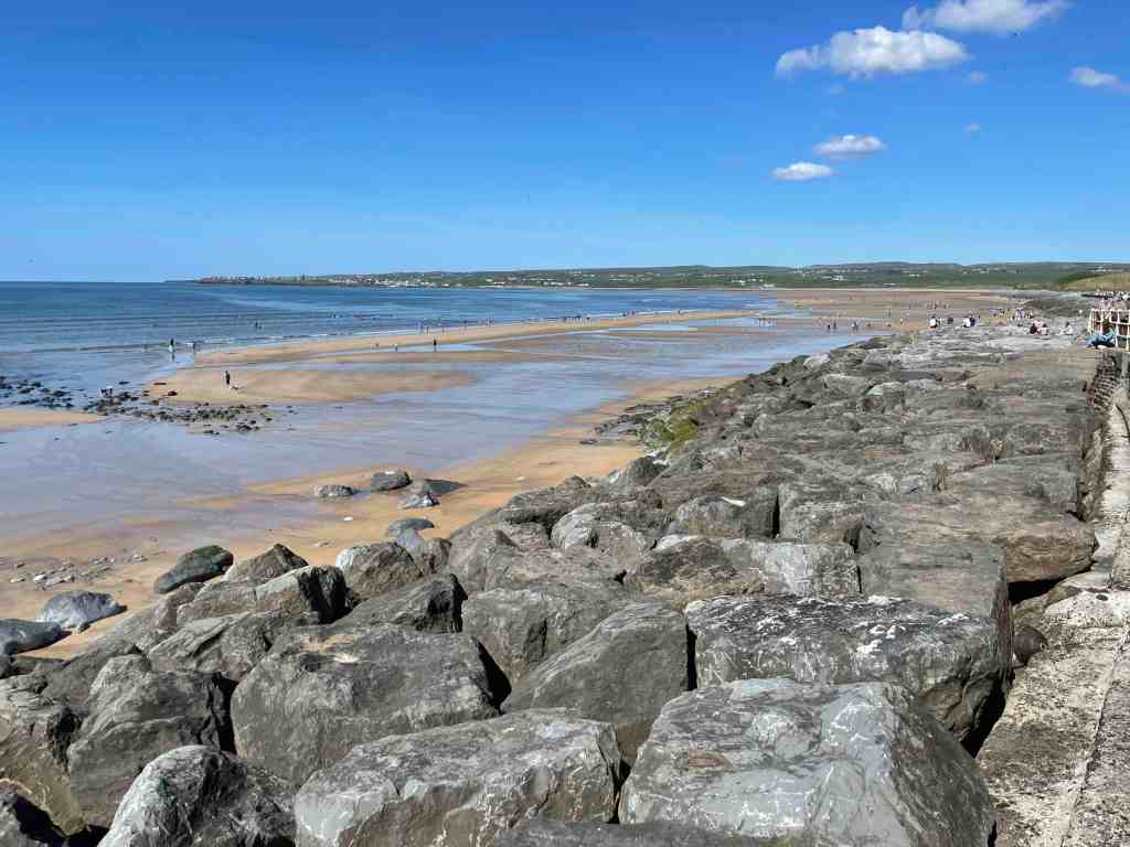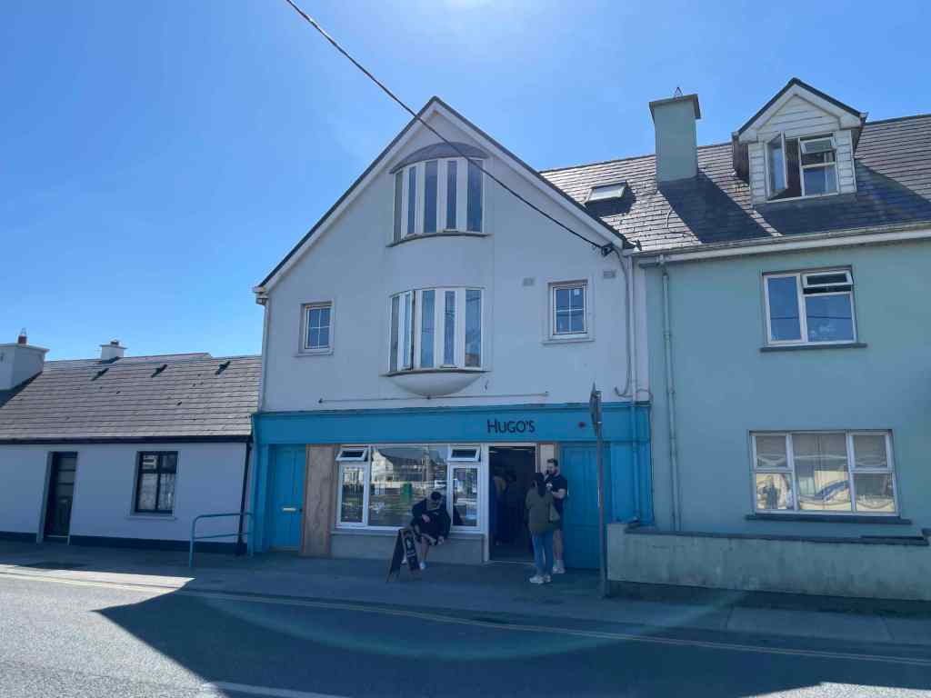 At Ballyvaughan, you will come to a ‘T’ junction, left will take you inland and right will take you along the coast, we usually tend to go left here and we usually come from the other direction on the return journey. However, there was a bike race on and they were all heading inland, so we opted to go on the coast road – going against the cyclists. The coast road makes for a pleasant drive which takes you around Black Head and down into the village of Fanore. Fanore has a nice beach and is always busy when the suns shines. Fanore car park is a good spot to leave the car as there are several walks that can be undertaken from here, including the 20+ Km Black Head Loop. Continuing along, you will see signposts for Doolin where we will be spending the night, but for now, we are continuing along to our first stop, Lahinch, pretty much considered the surf capital of Ireland. As the weather was amazing, Lahinch was busy, Lahinch is always busy. There are plenty of pubs which offer food as well as some smaller places to eat and drink. Lahinch is a good place to base yourself if you are visiting Co.Clare for a few days. We always pop into the Lahinch Surf Shop for a wander around and Celtic T-shirts are also worth a browse. C likes to visit the small Lahinch Bookshop for a browse. You will also find the outstanding Hugo’s Bakery – more about Hugo’s below.