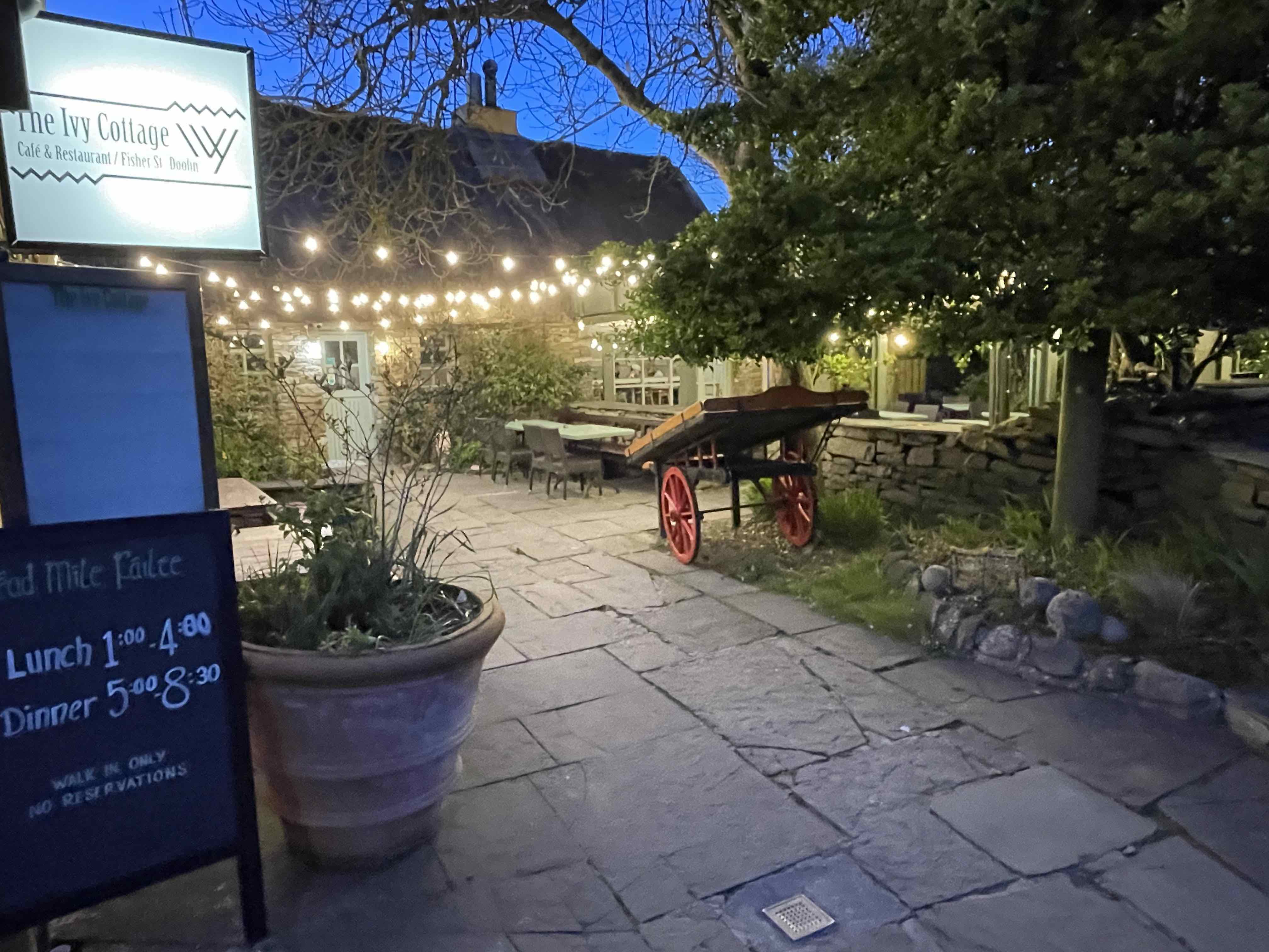 We relaxed in our room for a while before heading out for a walk, we headed towards the north of Doolin, which, is less than a 10 minute walk up the road. We popped into Fitz’s pub, grabbed a drink and soon after we sat down, three musicians arrived, sporting a fiddle, accordion and harp – there were really good. As we had no plans for dinner, we decided to just wing it. On this occasion, we wandered into The Ivy Cottage restaurant, the place was crazy busy but we were told we’d get a table in about 15 minutes, so we decided to wait.